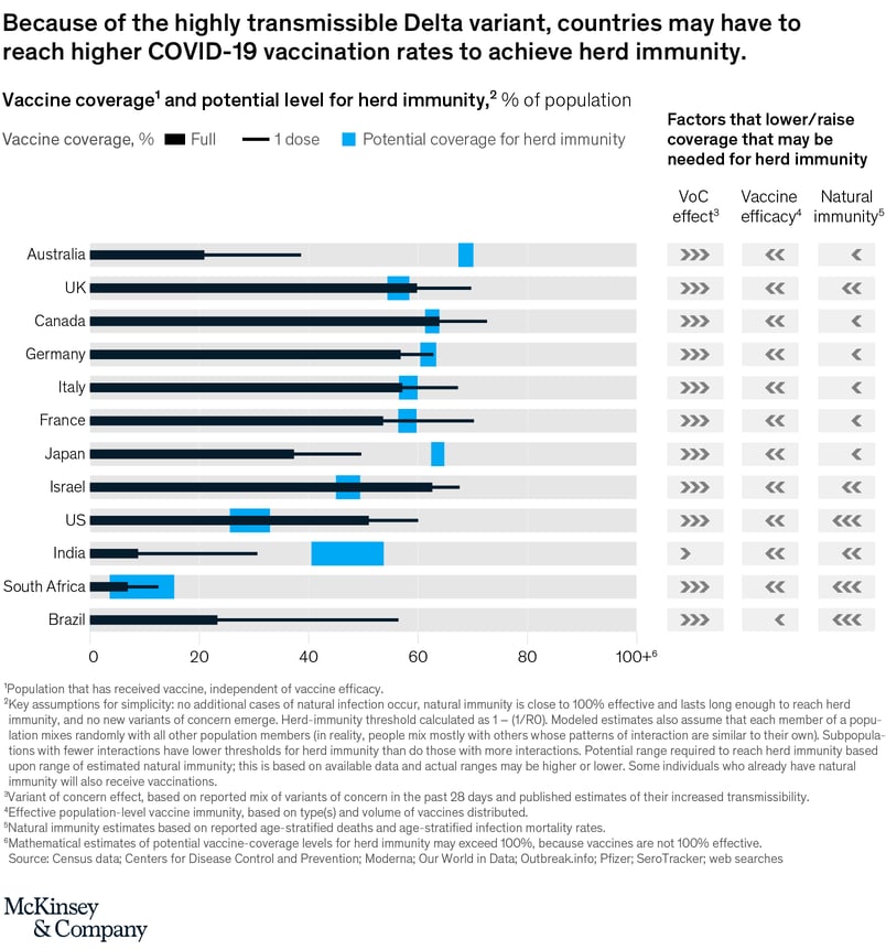 Because of the highly transmissible Delta variant, countries may have to reach higher COVID-19 vaccination rates to achieve herd immunity.